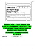 EDEXCEL GCE A-LEVEL PSYCOLOGY (6PS01/01) 2024 ADVANCED SUBSIDIARY UNIT 1, SOCIAL AND COGNITIVE PSYCOLOGY SUMMER MAY EXAM PAPER (AUTHENTIC MARKING SCHEME ATTACHED)