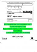 A-Level Pearson Edexcel Level 3GCE In Statistics (9ST0/02) Paper 02: Statistical Inference Summer Exam Paper (AUTHENTIC MAKING SCHEME)