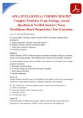 APEA 3P EXAM FINAL VERSION 2026/2027 APEA 3P EXAM FINAL VERSION 2026/2027 Complete Predictive Exam Package | Actual Questions & Verified Answers | Nurse Practitioner Board Preparation | Pass Guarantee