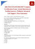 AHA PALS EXAM 2026/2027 Complete Certification Exam | Actual Questions & Verified Answers | Pediatric Advanced Life Support | Pass Guarantee