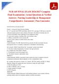 Prepare for your NUR 445 Nursing Leadership & Management Final Examination with this definitive resource featuring actual exam questions and verified answers for the 2026/2027 academic year. This package provides comprehensive final exam content covering nursing leadership theories, healthcare management principles, quality improvement methodologies, health policy applications, financi...