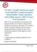 Prepare with the actual Regis University Final Exam - Pass Guaranteed! This resource contains actual exam questions and verified answers for the 2026/2027 NU 664C / NU664C Family Psychiatric Mental Health I Final Exam. Guaranteed to help you pass or your money back.