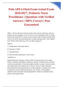 Prepare with the actual APEA Pediatric Final Exam - Pass Guaranteed! This resource contains actual exam questions and verified answers for the 2026/2027 Advanced Practice Education Associates Pediatric Nurse Practitioner Final Exam. Guaranteed to help you pass or your money back.
