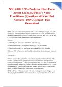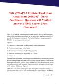 Prepare with the actual APEA Predictor Final Exam - Pass Guaranteed! This resource contains actual exam questions and verified answers for the 2026/2027 NSG 6998 APEA Nurse Practitioner Predictor Final Exam. Guaranteed to help you pass or your money back.