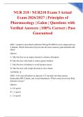 NUR 210 / NUR210 Exam 3 Actual Exam 2026/2027 | Principles of Pharmacology | Galen | Questions with Verified Answers | 100% Correct | Pass Guaranteed