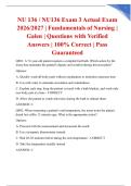 NU 136 / NU136 Exam 3 Actual Exam 2026/2027 | Fundamentals of Nursing | Galen | Questions with Verified Answers | 100% Correct | Pass Guaranteed