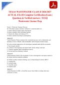 Prepare for your Texas Wastewater Class D Operator Certification Exam with this comprehensive resource featuring actual exam questions and verified answers for the 2026/2027 testing period. This package contains real exam content covering all TCEQ-required domains—wastewater collection systems, preliminary treatment, safety procedures, math calculations, and regulatory compliance. Ensure you master the knowledge a...