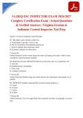 Prepare for your Virginia Department of Environmental Quality (DEQ) Erosion & Sediment Control (ESC) Inspector Certification Exam with this comprehensive resource featuring actual exam questions and verified answers for the 2026/2027 testing period. This package contains real exam content covering ESC regulations, inspection protocols, BMP implementation, site assessment, compliance...