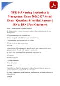 Prepare for your NUR 445 Nursing Leadership & Management Exam with this resource featuring actual exam questions and verified answers. This provides exam content covering leadership theories, quality improvement, healthcare finance, health policy, human resources, and ethical decision-making in nursing administration. Ensure you master the competencies needed for nursing leadership roles and succeed in your RN ...