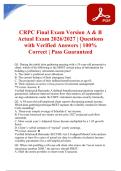 CRPC Final Exam Version A & B Actual Exam 2026/2027 | Questions with Verified Answers | 100% Correct | Pass Guaranteed