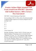 Frontier Airlines Flight Attendant FAR Exam Actual Exam 2026/2027 | Questions with Verified Answers | 100% Correct | Pass Guaranteed