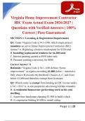 Virginia Home Improvement Contractor HIC Exam Actual Exam 2026/2027 | Questions with Verified Answers | 100% Correct | Pass Guaranteed