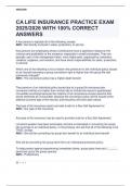 This document contains a complete practice exam for the California Life Insurance licensing exam for 2025/2026, featuring verified 100% correct answers. It covers key topics required for the state exam, including group and individual life insurance, annuities, Social Security, taxation, retirement plans, insurance code regulations, unfair practices, licensing rules, and ethics. Ideal for candidates preparing for the California Life-Only Agent License.