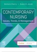This document is a complete test bank for Contemporary Nursing: Issues, Trends, and Management (10th Edition) by Barbara Cherry and Susan R. Jacob. It includes expertly verified multiple choice, multiple response, and completion questions with correct answers, covering chapters 1 to 28. Topics include the evolution of nursing, professional roles, nursing education, licensure and certification, healthcare policy, cultural competency, and nursing theory, among others. Ideal for exam preparation an...