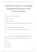 This document provides an extensive collection of verified questions and correct answers covering Radiation Protection in Medical Radiography. Topics include the biological effects of ionizing radiation, dose measurement units, ALARA principles, personnel monitoring, patient safety, and regulatory guidelines. The content also addresses technical concepts such as ionization, interaction of radiation with matter, dosimeter types, and radiation dose-response relationships. Essential for radiologic ...