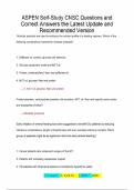 This document contains a comprehensive set of ASPEN Self-Study CNSC (Certified Nutrition Support Clinician) practice questions along with the correct answers and detailed rationales. Covering clinical scenarios across adult and pediatric nutrition support, it includes topics such as enteral and parenteral nutrition, electrolyte management, refeeding syndrome, medication administration via feeding tubes, feeding strategies, and complications related to nutrition therapy. It serves as an updated a...