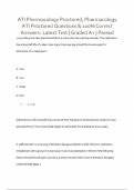 This document contains a complete set of ATI Pharmacology Proctored Exam practice questions and answers, verified as 100% correct and graded A+. It covers a wide range of pharmacological topics tested in nursing programs, including dosage calculations, adverse effects, medication interactions, contraindications, and drug administration procedures. The content is tailored for nursing students preparing for the ATI Proctored Pharmacology Exam in 2025.