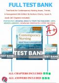 TEST BANK FOR Contemporary Nursing Issues, Trends, & Management 9th Edition by Barbara Cherry, Susan R. Jacob Chapters 1-28.||LATEST UPDATE.