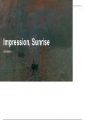 Learn the origins of Impression, Sunrise, a painting by Claude Monet with this humanities presentation/cheat sheet! In Humanities, you'll find yourself studying many works of art, including paintings just like this. This is an example presentation which includes all the necessary standard information you'll need to have in presentations like these!