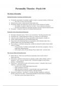 Notes of the Personality Theories section within Stellenbosch University's Psychology 144 course.