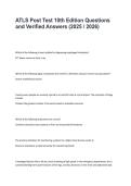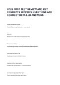 Access the ATLS Post Test Review and Key Concepts with questions and verified answers, updated for 2026/2027. Covers core Advanced Trauma Life Support topics including trauma assessment, airway management, shock, resuscitation, emergency interventions, and critical clinical decision-making. Ideal for nursing students, trauma nurses, and NCLEX/ATLS exam prep, this resource reinforces trauma care knowledge, strengthens critical thinking, and improves exam performance.