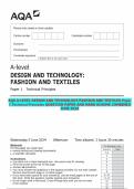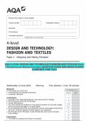 COMBINED JUNE 2024 i x Exam (elaborations) • 55 pages • by Teacherwilly • uploaded 2025 Quick View i x AQA • AQA AQA A-LEVEL DESIGN AND TECHNOLOGY:FASHION AND TEXTILES Paper 1 Technical Principles QUESTION PAPER AND MARK SCHEME COMBINED JUNE 2024 (0) $9.49 0x sold AQA A-LEVEL DESIGN AND TECHNOLOGY:FASHION AND TEXTILES Paper