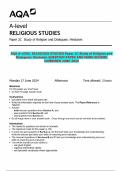 QUESTION PAPER AND MARK SCHEME COMBINED MAY 2024 i x Exam (elaborations) • 31 pages • by Teacherwilly • uploaded 2025 Quick View i x AQA • AQA AQA A-LEVEL RELIGIOUS STUDIES Paper 2E Study of Religion and Dialogues: Judaism QUESTION PAPER AND MARK SCHEME COMBINED JUNE 2024 (0) $9.49 0x sold AQA A-LEVEL RELIGIOUS STUDIES Paper 2E Study of Religion and