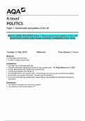 JUNE 2024 i x Exam (elaborations) • 21 pages • by Teacherwilly • uploaded 2025 Quick View i x AQA • AQA AQA A-LEVEL POLITICS Paper 1 Government and politics of the UK QUESTION PAPER AND MARK SCHEME COMBINED MAY 2024 (0) $9.49 0x sold AQA A-LEVEL POLITICS Paper 1 Government and politics of the UK
