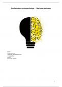 In dit document kun je het volledige take-home tentamen van het vak Fundamenten van de Psychologie vinden. De leerteamvragen, leerteamopdrachten, individuele opdracht en de reflectie. Ik heb hier een 7.5 voor gehaald.