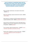 This essential study guide for the Law of Contracts Champions Exam features the latest 2024 actual exam questions and correct, detailed answers with full rationales, ensuring a Grade A+ performance. It covers critical real estate and contract law topics, including: required vs. non-required information in a contract (e.g., marital status is not required), physical characteristics of land (indestructability), federal disclosure compliance (Lead-Based Paint Disclosure for pre-1978 properties), and...