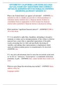 This comprehensive study guide for the California Optometry Law Exam is the latest and most complete version for the 2024/2025 testing cycle. It contains over 300 verified questions and detailed, correct rationales covering essential legal topics for optometrists in California, including Federal-Stark Law (self-referrals), advertising regulations, licensure requirements, professional conduct, and reporting obligations. This resource is graded A+ and is crucial for license preparation and ensurin...