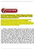 This comprehensive study guide and test bank for the NR 547 Psychopharmacology course for Psychiatric Mental Health Nurse Practitioner (PMHNP) students features the latest actual exam questions and 100% verified, A+ graded answers. It is designed for mastery of key topics, including neurotransmitter systems (e.g., serotonin, dopamine), pharmacokinetics, drug-receptor interactions, clinical case applications (e.g., diagnosing and treating Major Depressive Disorder with symptoms like anhedonia, l...