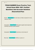 This comprehensive study guide for the Texas Barber Exam provides an extensive practice test with 100% verified questions and accurate solutions to ensure you pass your licensing exam on the first attempt. It covers essential topics like safety and sanitation (including the proper use of phenols and the Z-track method for injectable products), the chemical composition of hair and nails (keratin), the function of sweat glands (sudoriferous), haircutting techniques (palming, weight line), and regu...