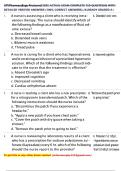 This essential document is the ultimate study guide for the ATI Pharmacology Proctored Exam (2025 update), featuring a full set of 150 questions with detailed, 100% verified answers and rationale. The content covers high-yield pharmacological topics, including fluid volume management (distended neck veins), electrolyte imbalances (hyponatremia, hyperkalemia), drug administration (transdermal patch application), and cardiac medications (nitroglycerin). Structured for self-assessment and focused r...