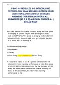 This comprehensive document provides a complete study guide for the PSYC 101 Introductory Psychology course, featuring 40 verified questions and correct detailed answers from Modules 1 through 6. Updated for the 2025/2026 academic year, it covers fundamental psychological concepts such as research methods (case study, experiment), variables (independent, dependent), early schools of thought (Functionalism, Structuralism), and key figures like Charles Darwin and William James. Structured for effi...