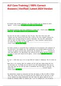 This essential document provides a complete study guide for the Florida Assisted Living Facility (ALF) Core Training and licensing exam, featuring 100% correct and verified answers. Updated for the 2024 version, it covers critical regulatory topics such as the licensing agency (AHCA), statutory compliance (Chapter 429), deficiency classes (Class III), staff training and orientation requirements, and mandatory corrective actions (Registered Nurse/Pharmacy consultant). Structured for self-assessme...
