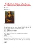 This is the complete, expert-verified test bank for the 1st edition of Art Matters by Pam Gordon. It features a comprehensive collection of multiple-choice questions and detailed answers for all chapters, focusing on how art functions as a central part of human life. Key topics include the role of patrons and craftsmen associations during the Renaissance, the social benefits of art education, and the therapeutic applications of art for children and adults. Designed for students and educators, th...