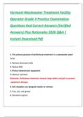 This is the complete, expert-verified practice examination and study guide for the Vermont Wastewater Treatment Facility Operator Grade 4 certification. It features a comprehensive collection of exam questions and verified correct answers, complete with technical rationales for the 2026 cycle. The guide covers advanced wastewater management topics, including preliminary treatment, grit chamber mechanics, primary clarification through sedimentation, and biological BOD reduction via trickling filt...