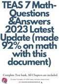 TEAS 7 Math-Questions&Answers 2023 Latest Update (made 92% on math with this document)