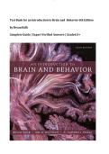 This document provides a complete test bank for An Introduction to Brain and Behavior, 6th Edition by Bryan Kolb. It includes comprehensive exam-style questions covering all core topics in neuroscience and behavior, with expert-verified answers and clear explanations to support effective studying and exam preparation. The material is ideal for psychology and neuroscience students aiming for top academic performance.