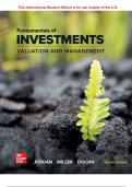 This document provides an overview of the core concepts covered in Fundamentals of Investments: Valuation and Management (10th Edition) by Jordan and Miller, including investment principles, valuation methods, portfolio theory, and financial market fundamentals. It highlights the topics commonly emphasized in introductory investment and finance courses to support student learning and exam preparation. All content is strictly educational and does not include or reference proprietary test-bank mat...