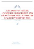 This document covers the complete test bank for Chapters 1–20 of Nursing Leadership, Management, and Professional Practice for the LPN/LVN (7th edition) by Tamara R. Dahlkemper. It includes chapter-specific questions and answers addressing leadership roles, management concepts, delegation, communication, ethics, and professional practice standards for LPNs/LVNs. The material is structured to support exam preparation and reinforce foundational concepts required for practical nursing programs. I...