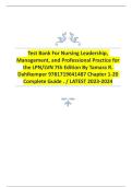 This document provides a comprehensive 2026/2027 study resource based on the key concepts from Nursing Leadership, Management, and Professional Practice for the LPN/LVN, 7th Edition. It includes clear summaries of major topics, leadership principles, management strategies, delegation guidelines, and professional practice standards. The material also contains original practice questions and explanations to support learning, without reproducing or distributing any copyrighted test-bank content.