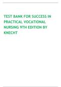 This document provides the full test bank for Success in Practical/Vocational Nursing (9th edition) by Knecht. It includes comprehensive chapter-based questions and answers covering essential concepts for practical and vocational nursing programs, such as critical thinking, study skills, clinical preparation, communication, and professional behavior. The material is structured to support exam readiness and reinforce core competencies required throughout LPN/LVN training.