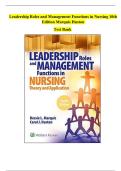 This document provides the full test bank for Leadership Roles and Management Functions in Nursing: Theory and Application (11th Edition) by Marquis and Huston, covering Chapters 1–25. It includes comprehensive exam-style questions and accurate answers focused on leadership theory, critical thinking, delegation, power and conflict, time management, budgeting, quality improvement, and organizational structure. The material offers a complete study resource aligned with nursing leadership and man...