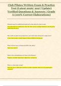 Club Pilates Written Exam & Practice Test (2026/2027 Update) – Verified Questions & Answers with Full Elaborations