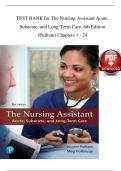 TEST BANK for The Nursing Assistant Acute, Subacute, and Long-Term Care, 6th Edition (Pulliam) Chapters 1 - 24 (All Chapters Covered) (Graded A+)