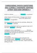 CARDIOGENIC SHOCK QUESTIONS AND CORRECT ANSWERS VERIFIED LATEST 2023-2024 GRADE A +