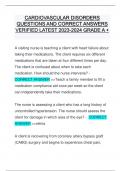CARDIOVASCULAR DISORDERS QUESTIONS AND CORRECT ANSWERS VERIFIED LATEST GRADE A +CARDIOVASCULAR DISORDERS QUESTIONS AND CORRECT ANSWERS VERIFIED LATEST GRADE A +