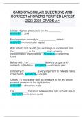 CARDIOVASCULAR QUESTIONS AND CORRECT ANSWERS VERIFIED LATEST GRADE A +